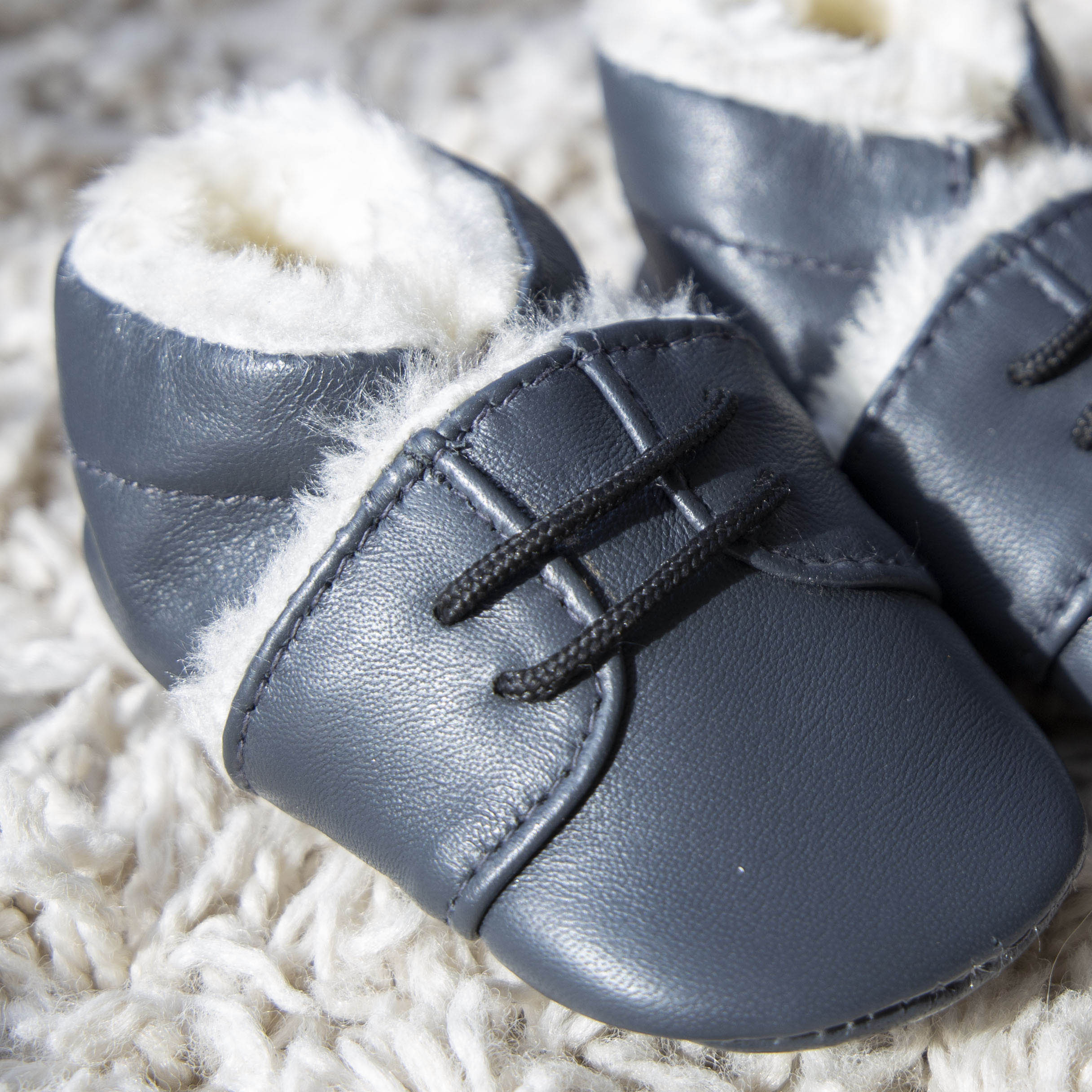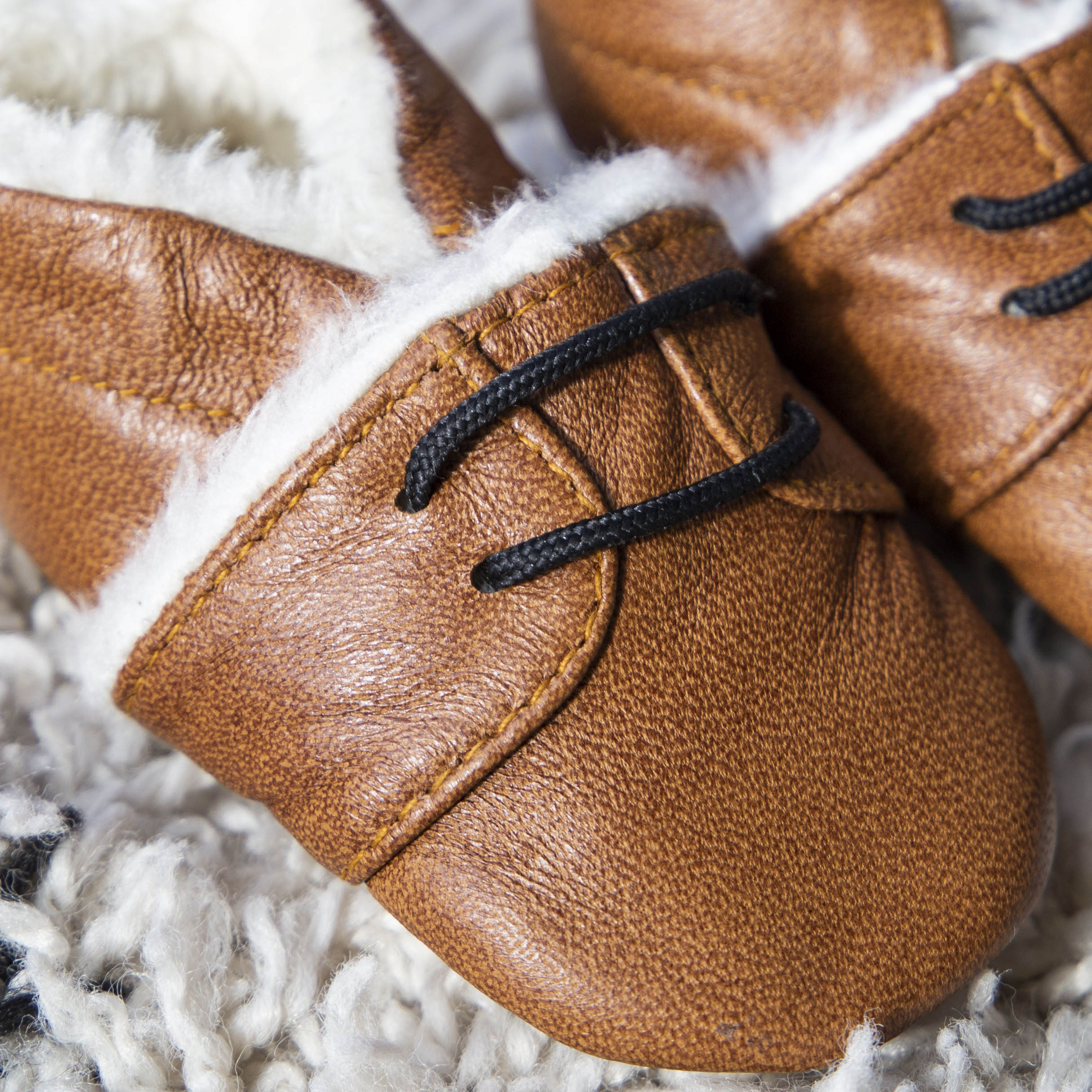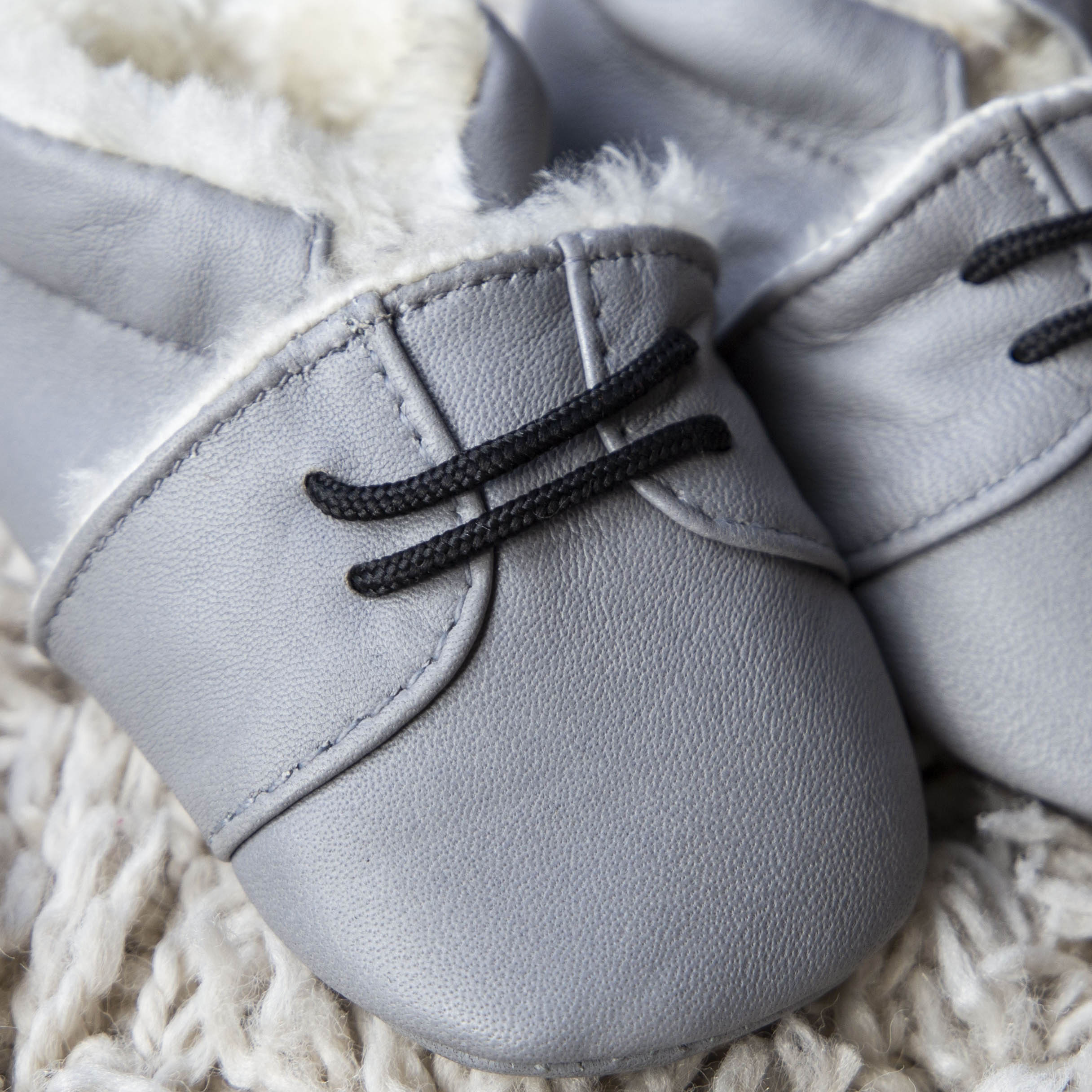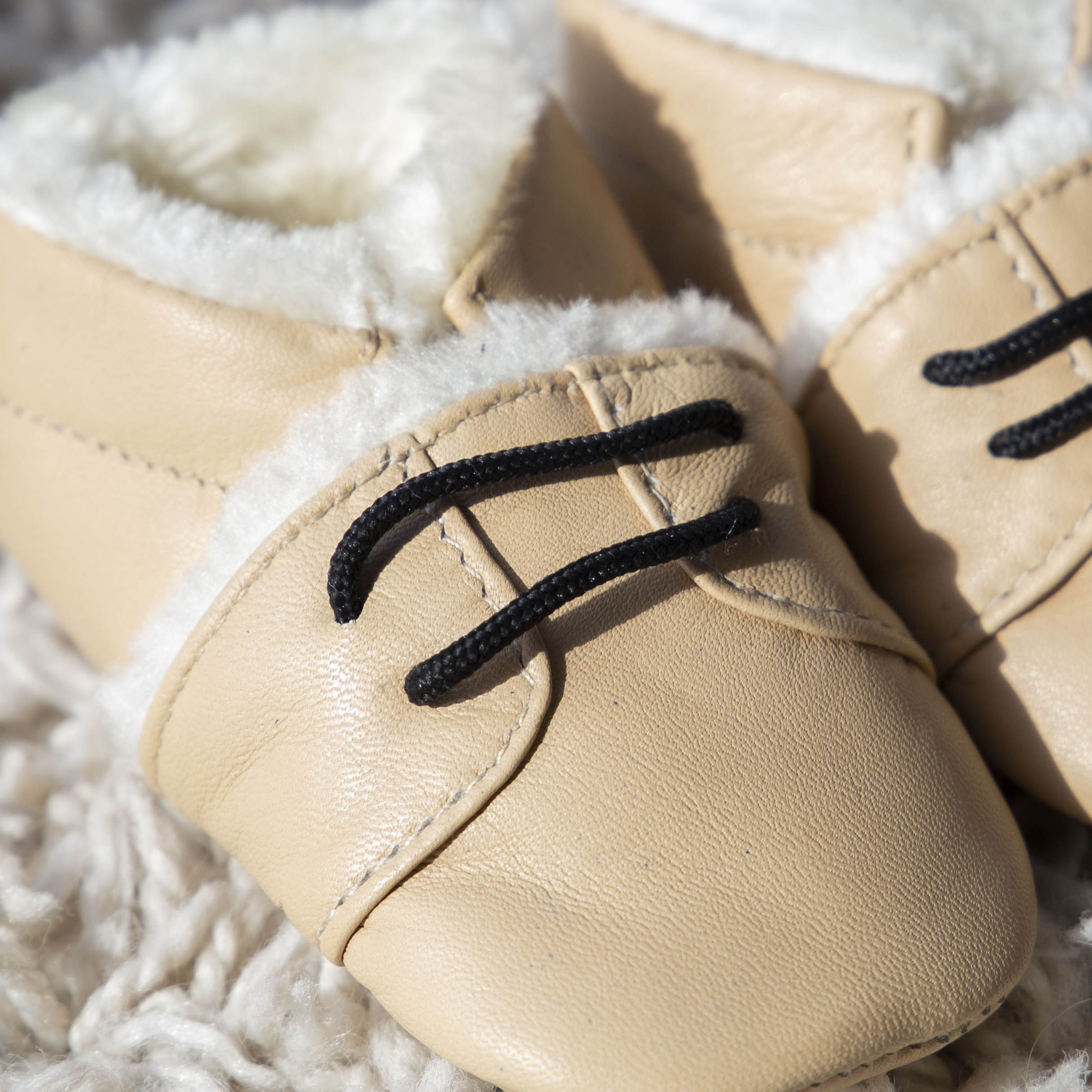 Re-covers Lammleder Babyschuhe Halten Sie die Füße Ihres Neugeborenen schön warm mit diesen wunderschönen Leder-Babypantoletten. Hergestellt aus 100 % weichem Lammfell. Der Gummizug erleichtert das An- und Ausziehen. Das Futter aus chromfreiem Leder ist weich und bequem für empfindliche Füße. Das herausnehmbare Lederfußbett und die Ledersohle schränken die Fußbewegung nicht ein.
